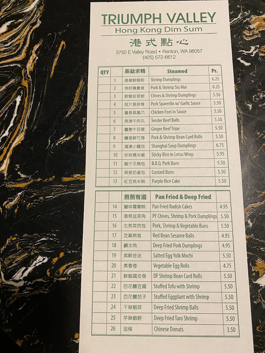 Welcome to Triumph Valley, where the vibrant flavors of China come alive in Renton, WA! Located at 3750 E Valley Rd, this charming Chinese restaurant is renowned for its delightful array of dim sum and specialties that captivate the palate. The menu features an impressive selection, particularly the Chao Fan dishes such as the Da Pai Dang Hai Xian Chao Fan and the Yang Zhou Chao Fan, offering rich flavors and generous portions.